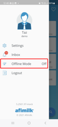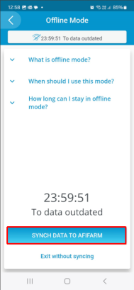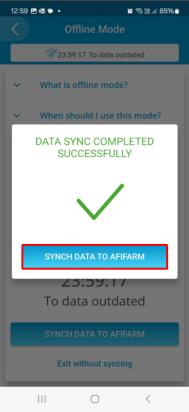 Note: Once you have finished working in Offline mode, you must sync your data to AfiFarm in order to return to online mode.