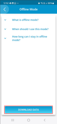 Note: You will be prompted to download your data. After this, tap Start Offline mode see Work Offlinefor full instructions on how to access offline mode, and how to reconnect and sync your data.