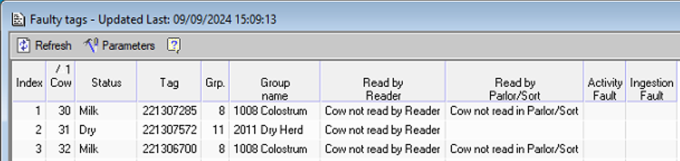 Displays the group name to which the cow with the faulty tag is assigned. |